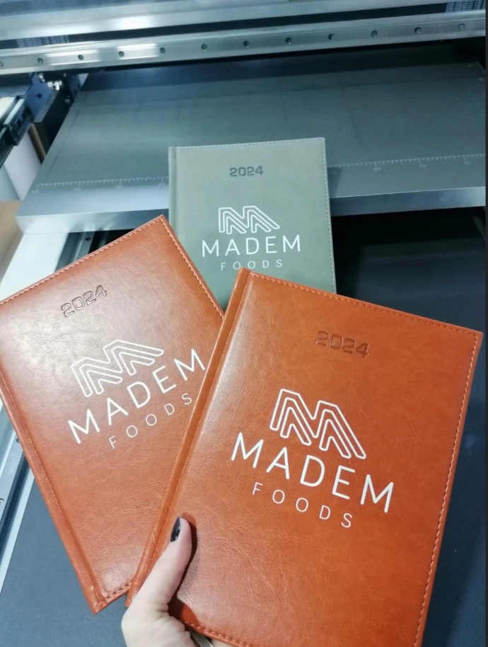 Kolorowy nadruk UV - nowoczesna i bardzo trwała metoda znakowania kalendarzy.